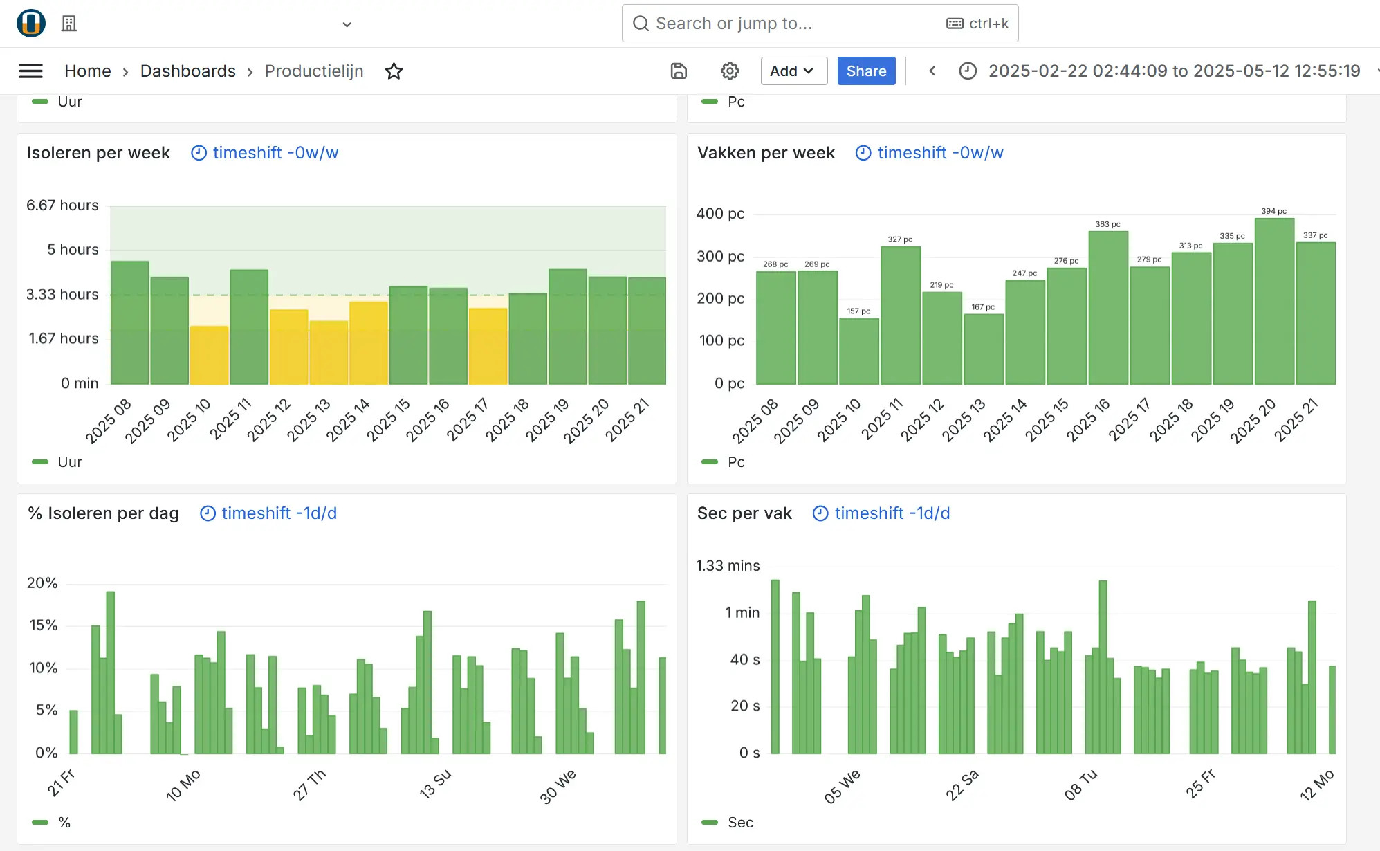 Get real-time insight into all your industrial processes with our dashboard solution. All (time-based) data is collected and presented in clear, interactive dashboards.