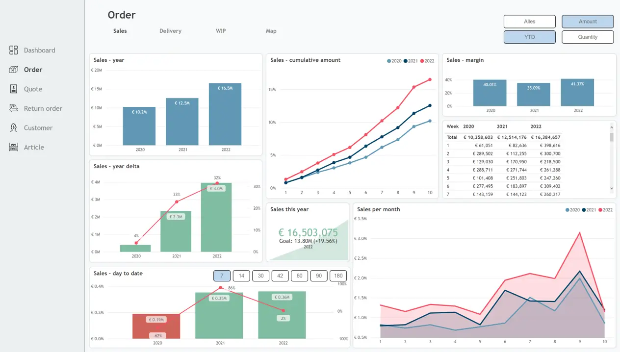 Integrate your production, ERP and sales data in Power BI dashboards for data-driven decision-making and operational efficiency.